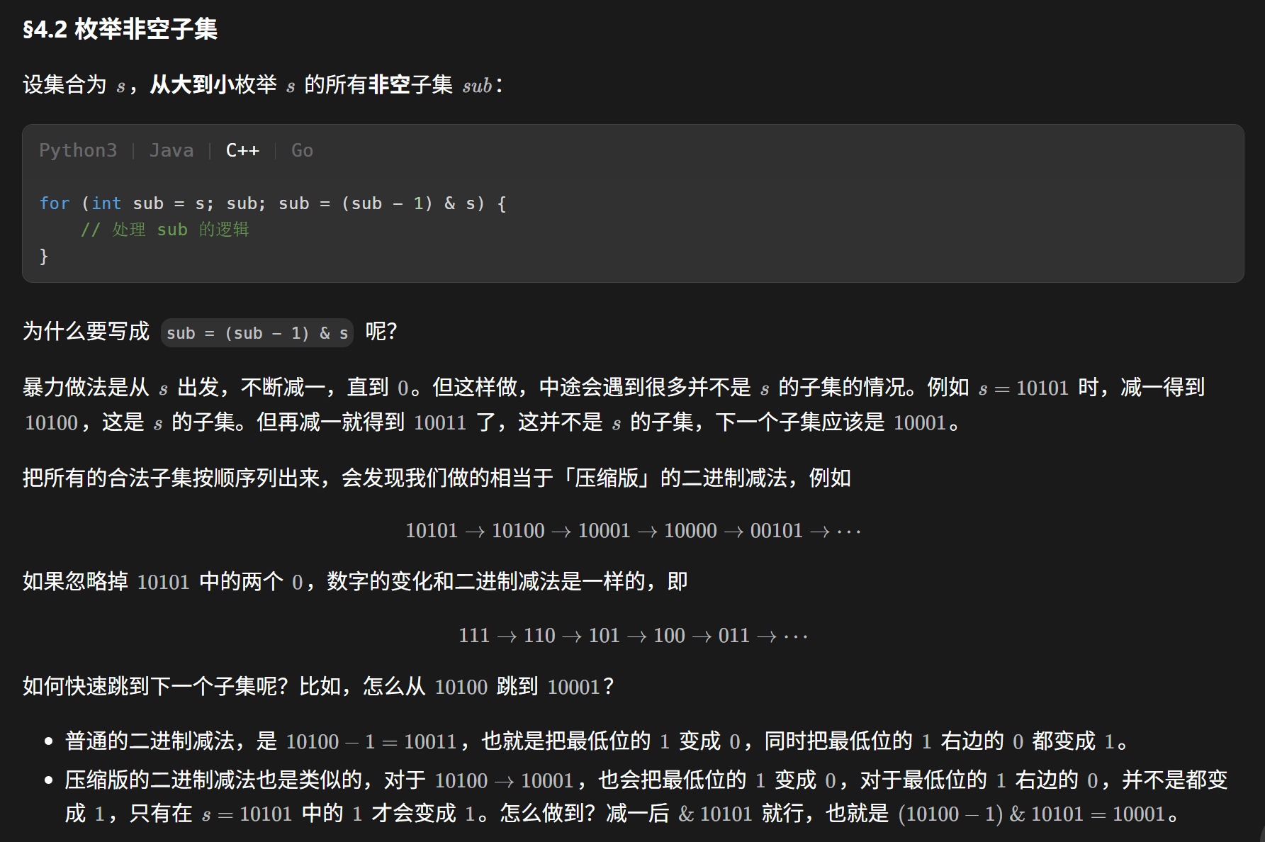 这道题是位运算里面一个很常见的trick,从集合的角度看就是枚举子集。