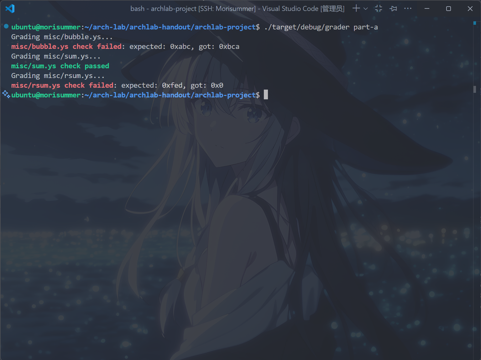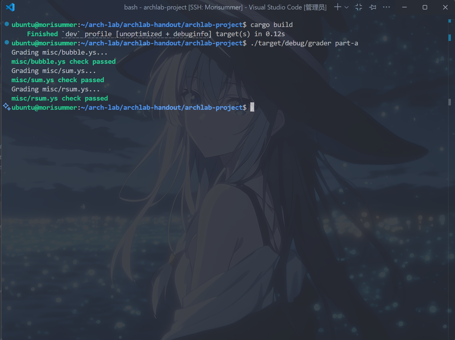 笔者需要提醒的是,类似Data Lab中的make指令,每次修改代码后,需要使用cargo build指令进行构建,方可进行测试。