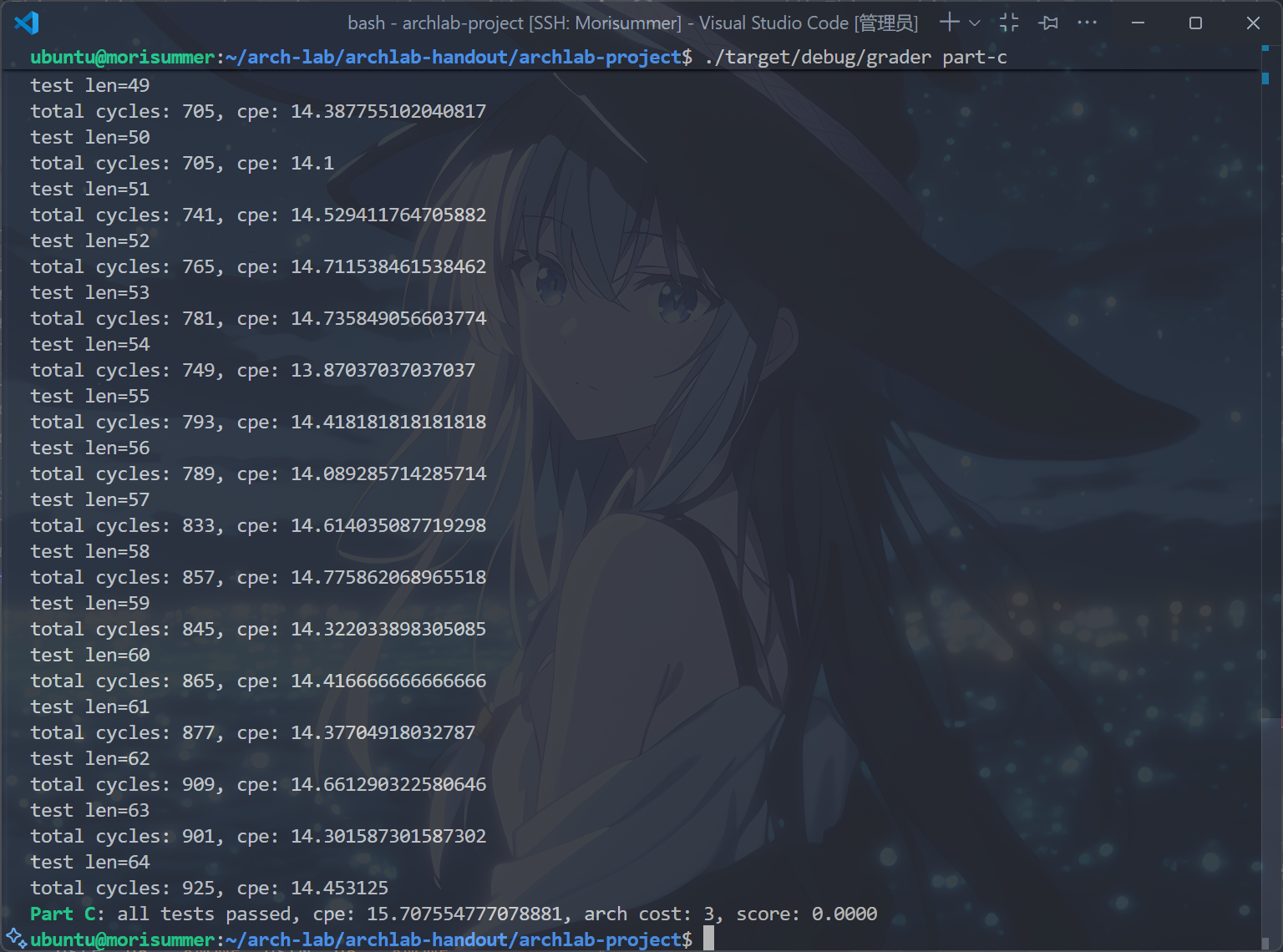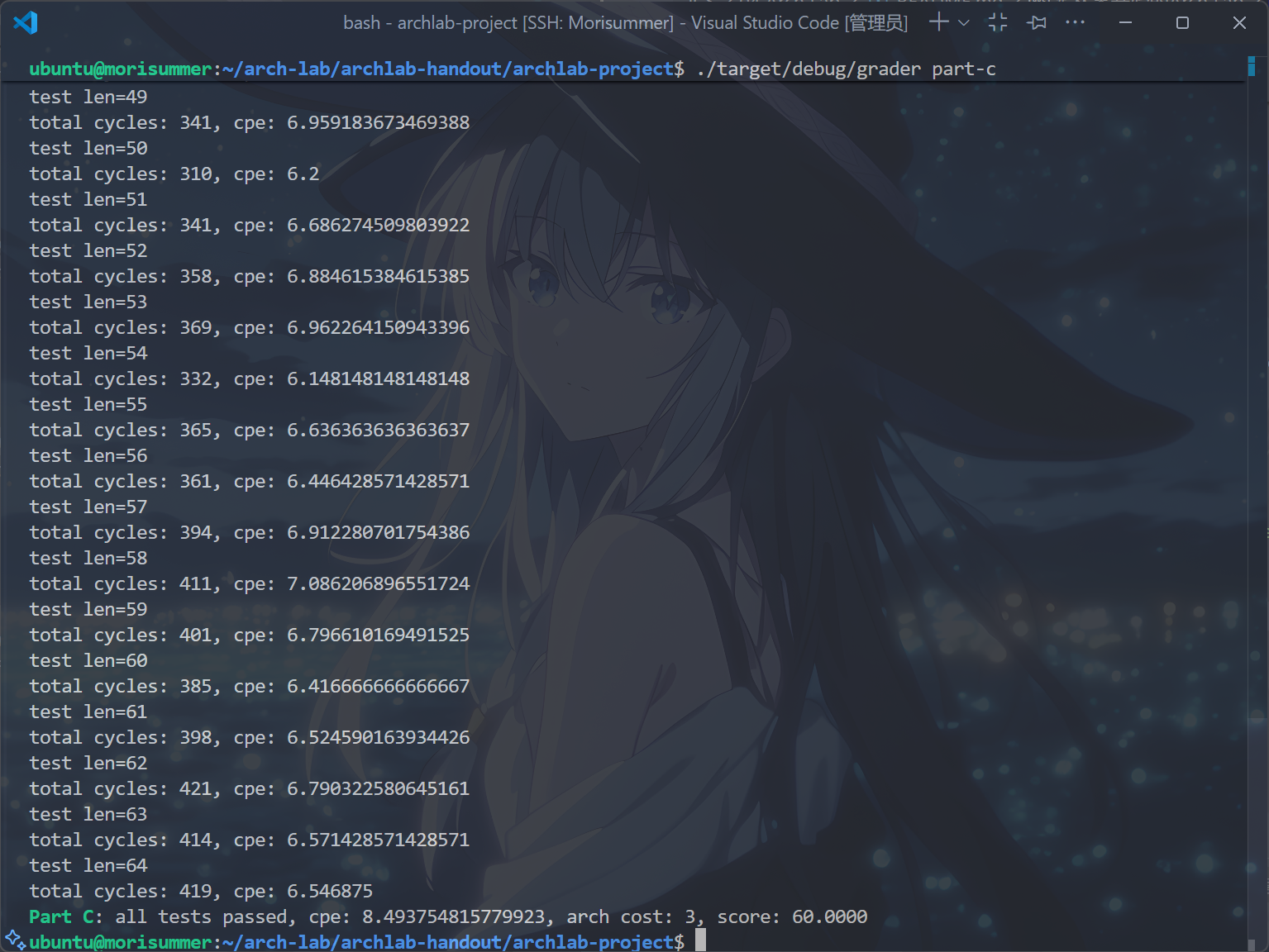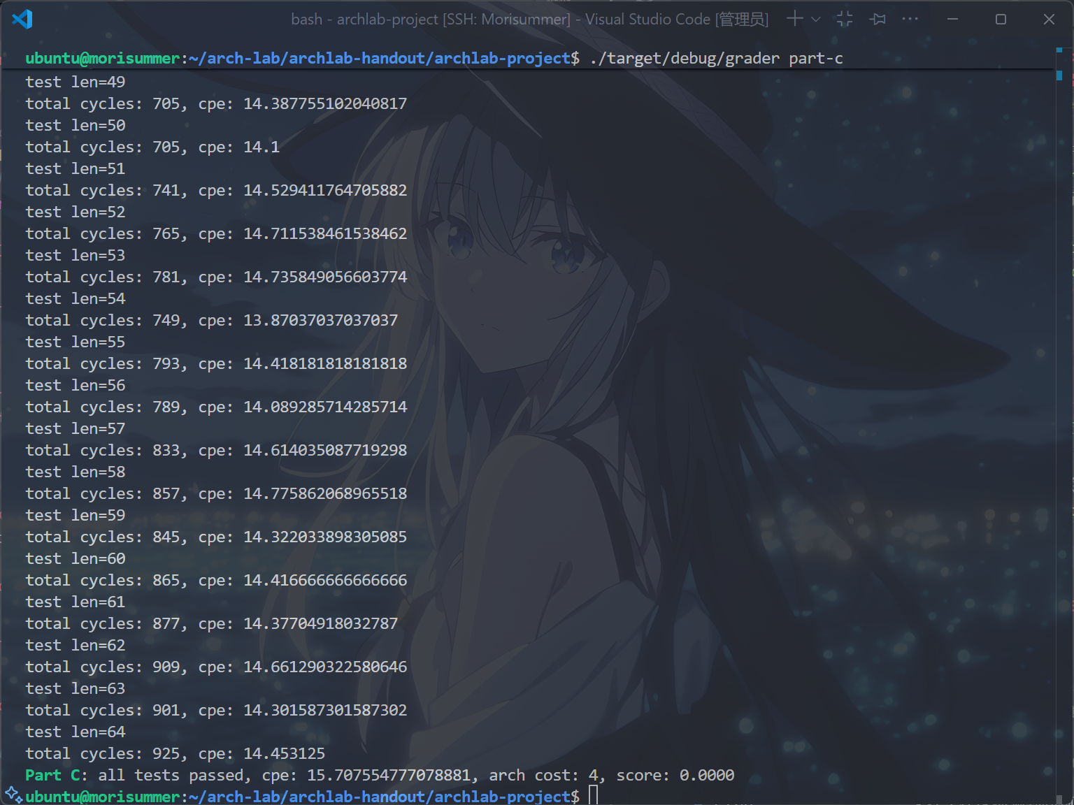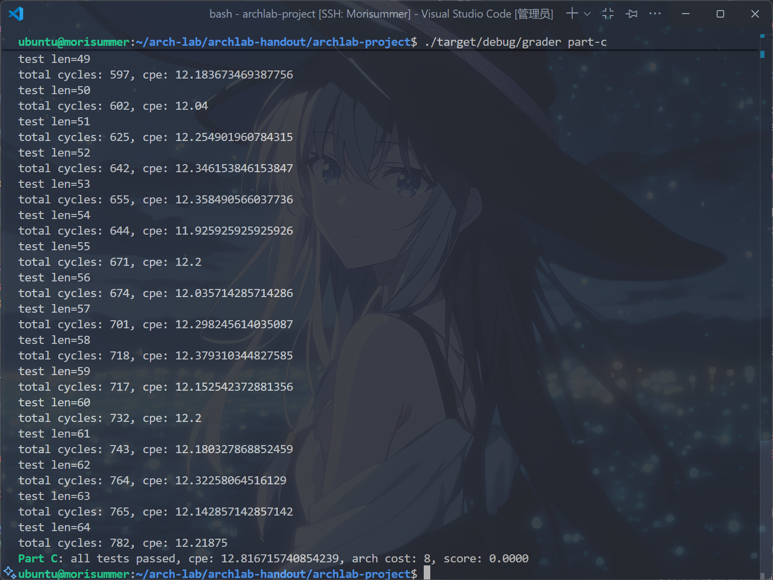 ),以及Part C中,修改原有的单一CPE优化要求为Arch Cost+CPE的混合优化要求,并加强了测试数据,此Lab的难度大致为中高,笔者用时约为 $12 \sim 14$ 小时。