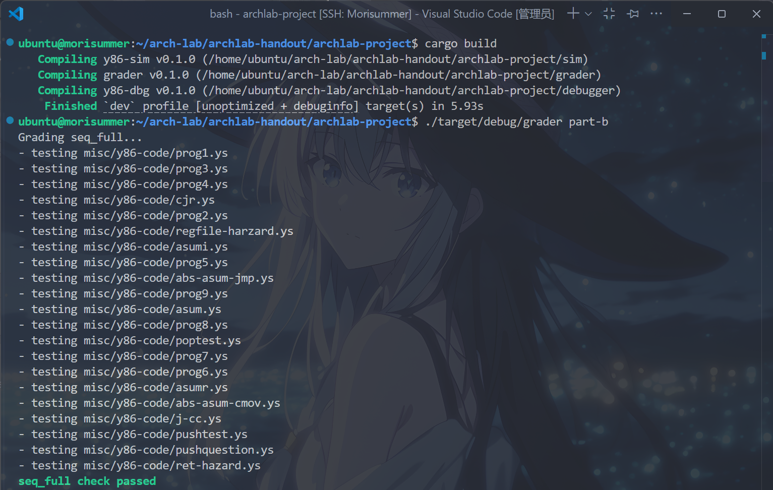 值得一提的是,此次Lab又受到了PKU助教团队的大幅魔改加强,具体体现在,Part A中,将原有的copy_block.ys改为bubble.ys,Part B中,增加了原Lab中没有的优化流水线环节,并将原有的HCL语言转换为Rust语言(技术支持来自HWY学长