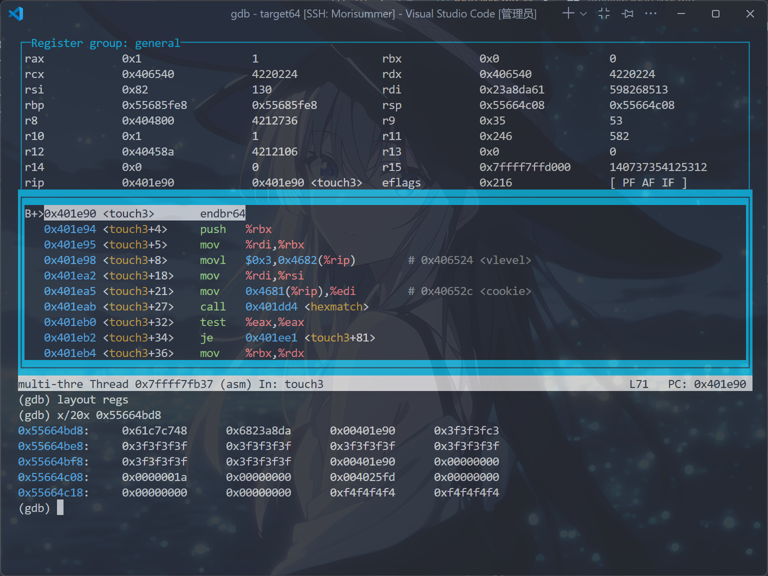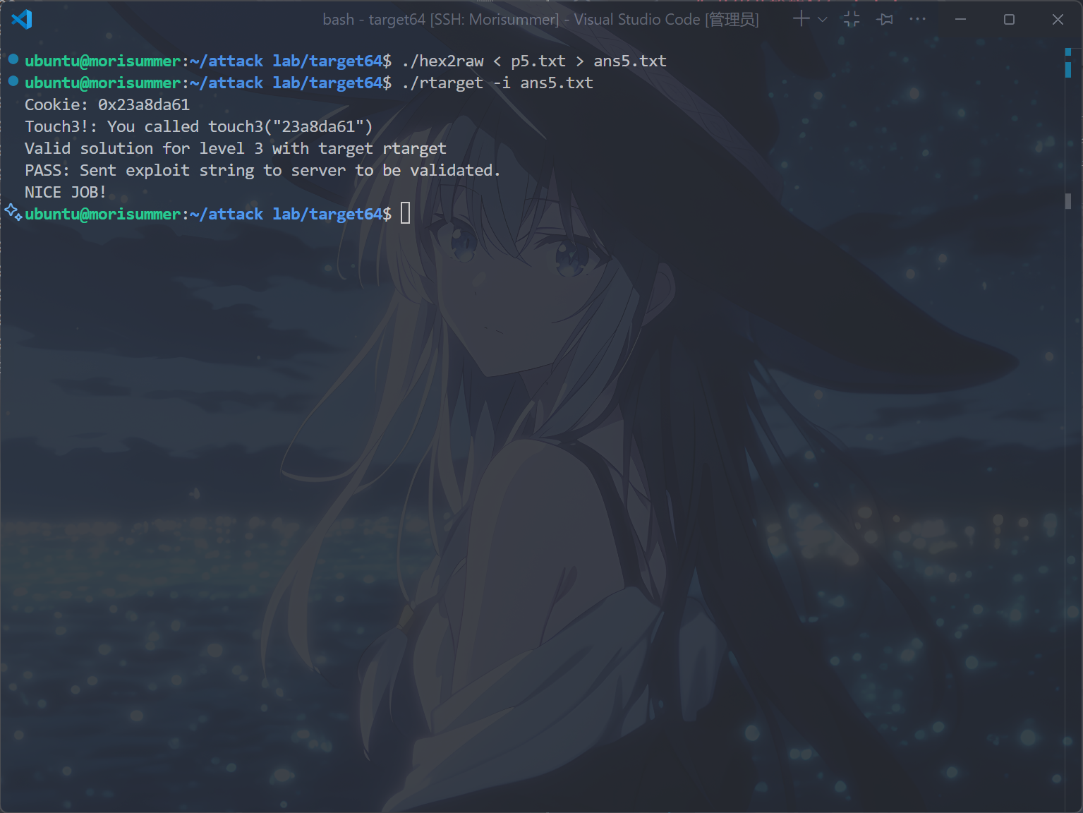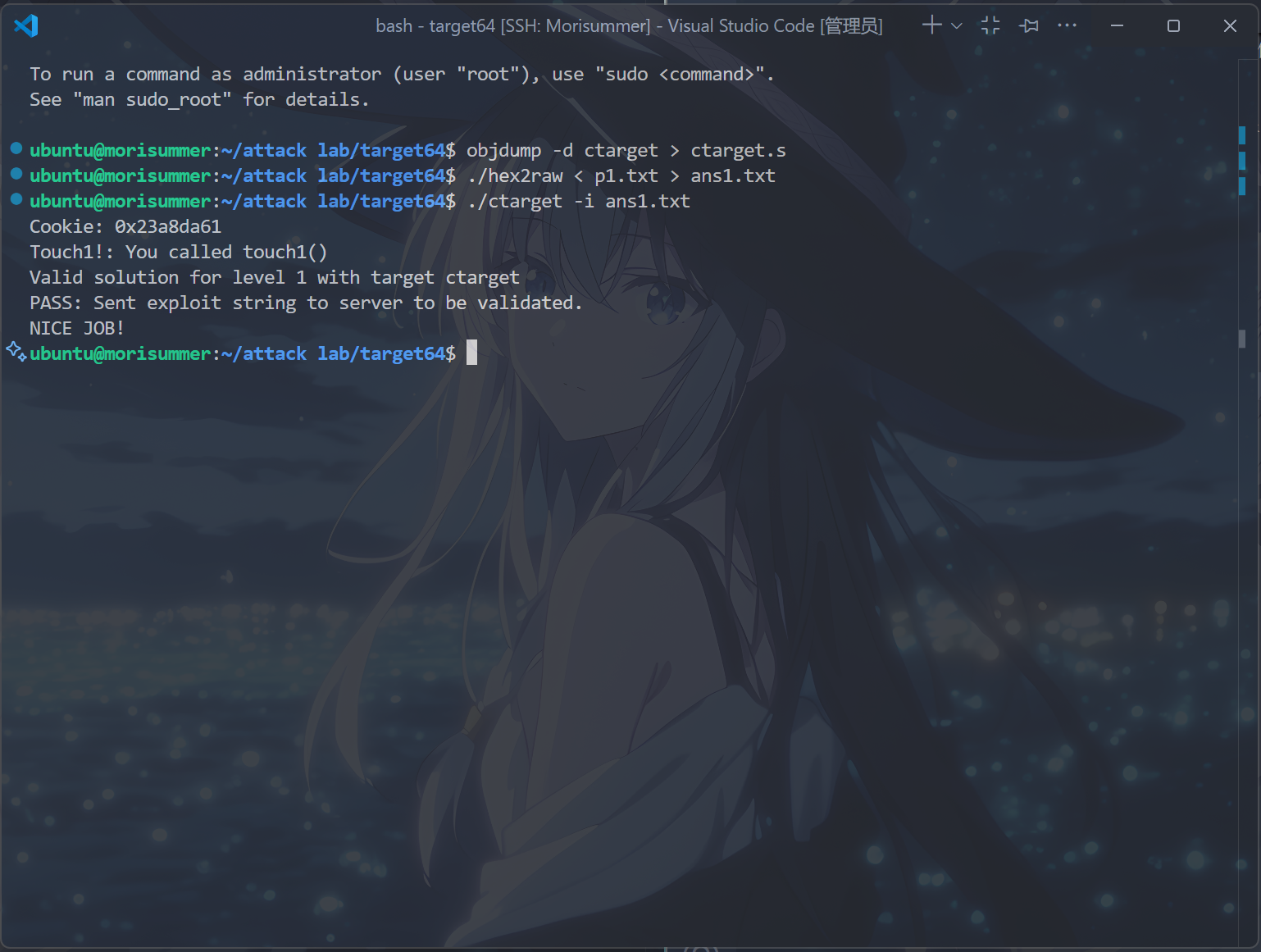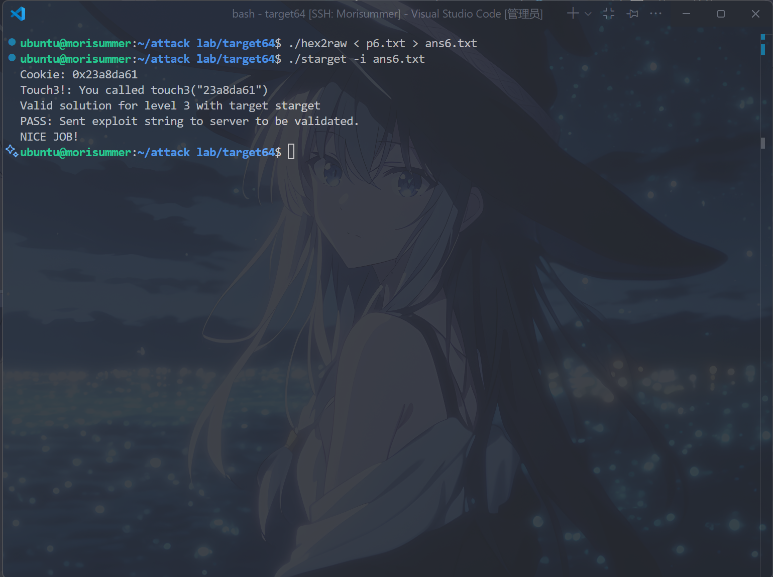 在Attack Lab中,需要完成6次攻击(即phase 1 $\sim$ phase 6),主要思路是通过向缓冲区输入相关字符串,来引导程序跳转至程序规定的函数(即touch1、touch2和touch3),并完成相关要求。同时,对于下载的每个target x包,系统都会发放不同的cookie.txt作为攻击依据。与Bomb Lab不同,错误发起攻击将不会受到任何处分惩罚。