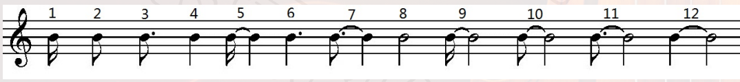 倍数恰好等于时值序列本身 $1,4,3,2$